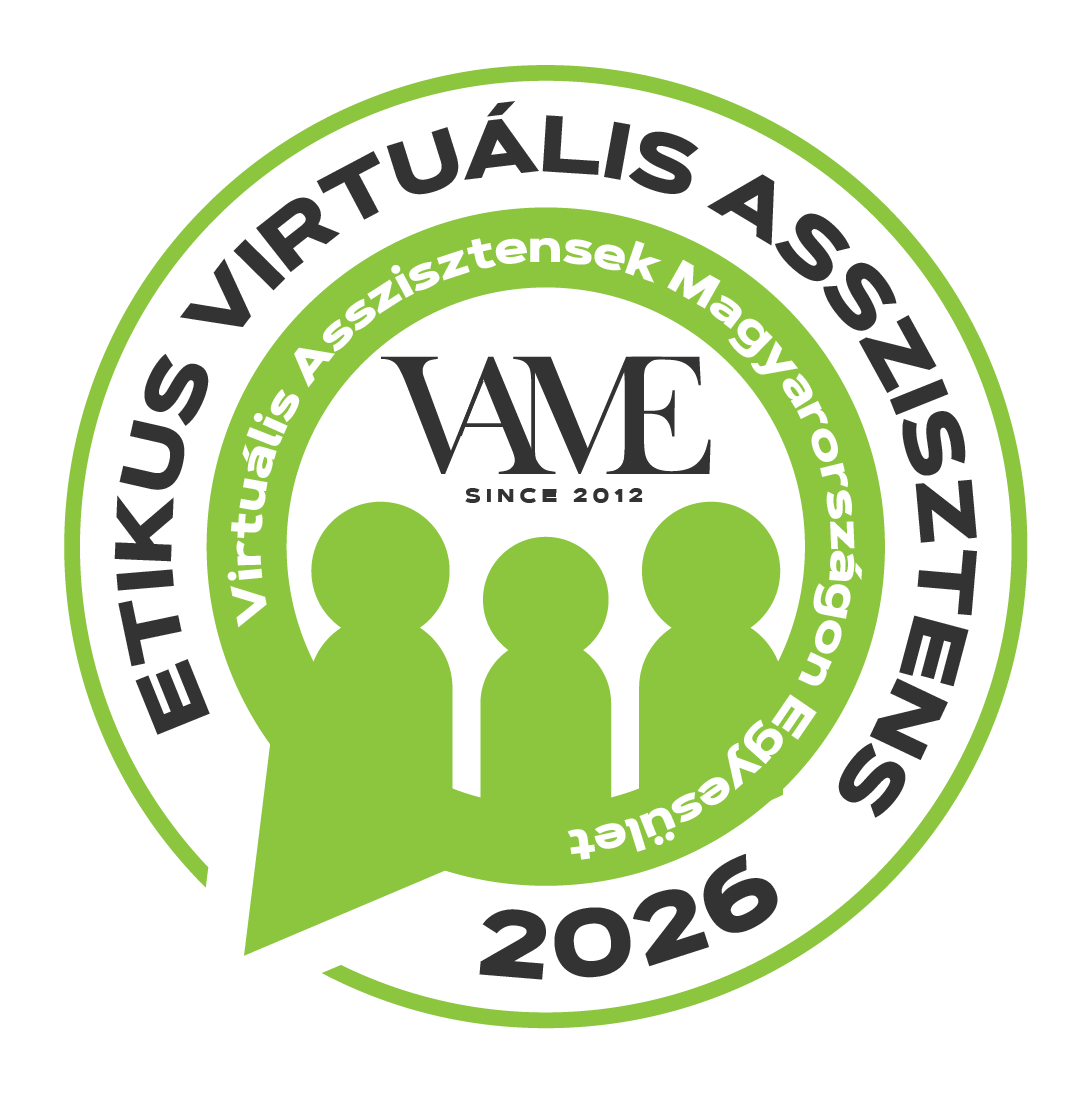 Jogosult vagyok használni az "Etikus virtuális asszisztens" logót, mely számomra nemcsak egy "pecsét", hanem elköteleződést is jelent a szakmai standardok és a partnereim iránti felelősségvállalás mellett.